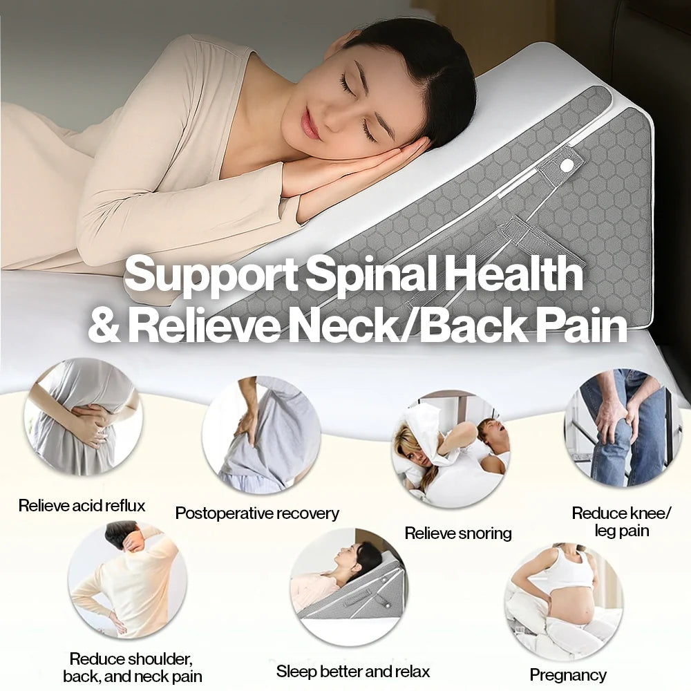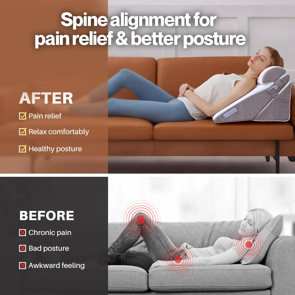 Ergonomically designed to improve posture and circulation, this orthopedic pillow set helps reduce neck, shoulder, back, knee, and leg pain. It supports post-surgery recovery, pregnancy care, and alleviates common conditions like heartburn, varicose veins, congestion, and migraines.