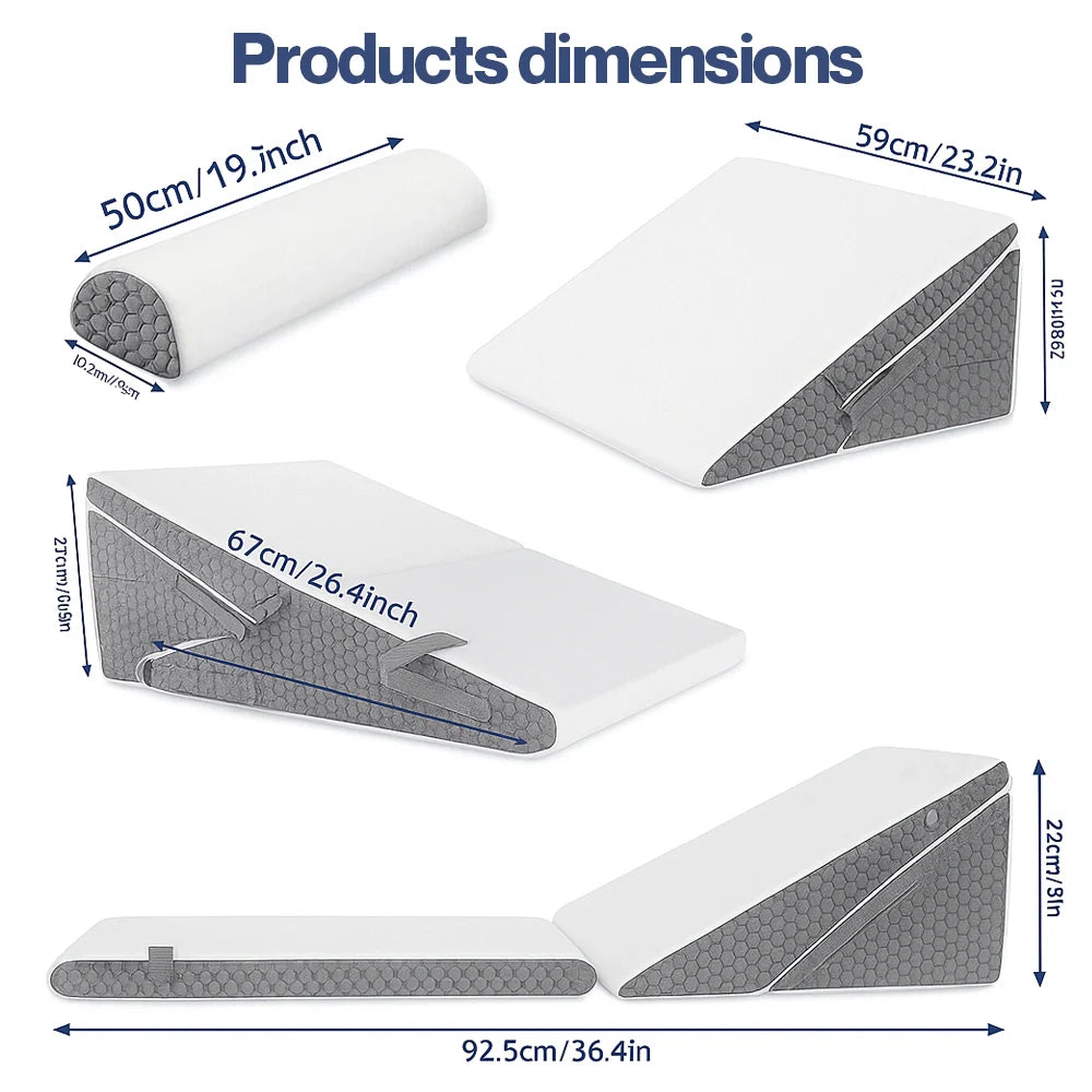 Transform your comfort experience with a dynamic, adjustable design that caters to a variety of needs. Perfect for sleeping, reading, working, or post-surgery recovery, this wedge pillow set offers head, neck, back, and leg support. Easily switch between positions to relieve snoring, acid reflux, GERD, and improve blood circulation.