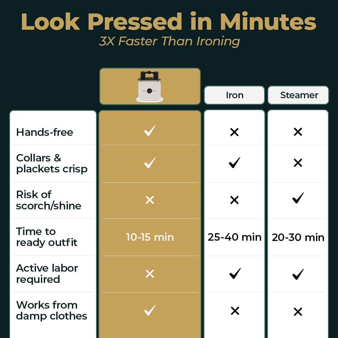 No more wasted hours ironing. No more overpaying at the dry cleaner. SmoothPress™ is the only tool you’ll ever need to keep your wardrobe sharp, fast.